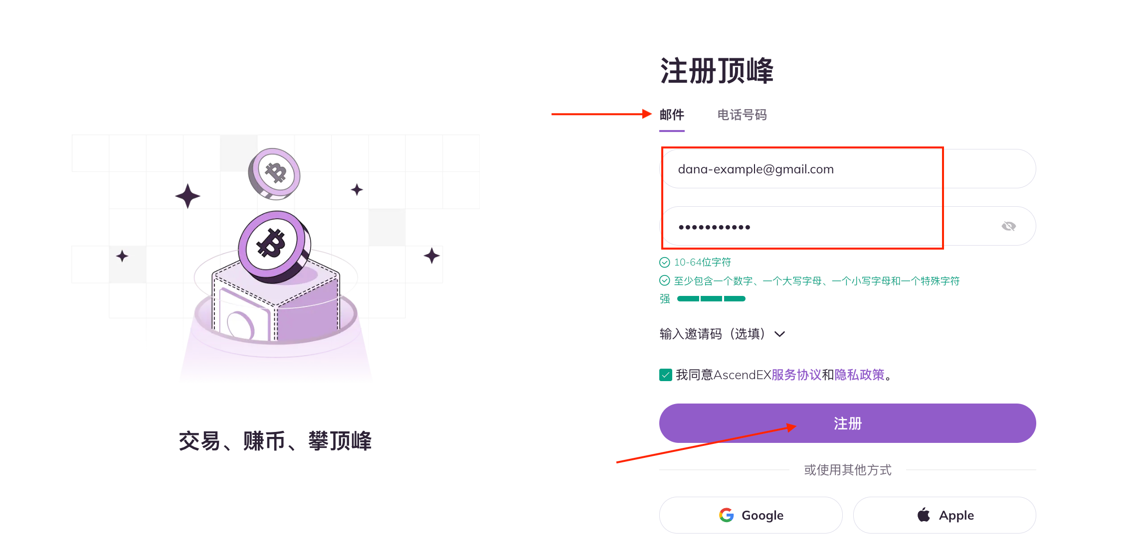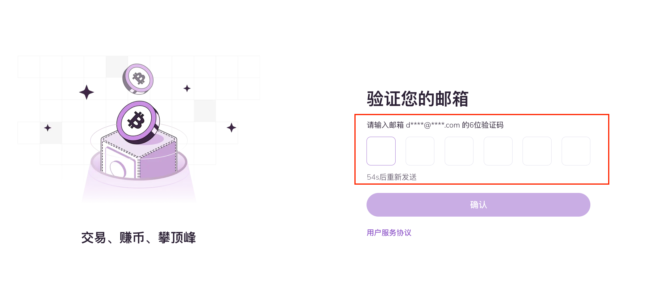 3. 去邮箱查找AscendEX官方发送的验证码邮件,填写验证码后点击【确认】即可注册完成。