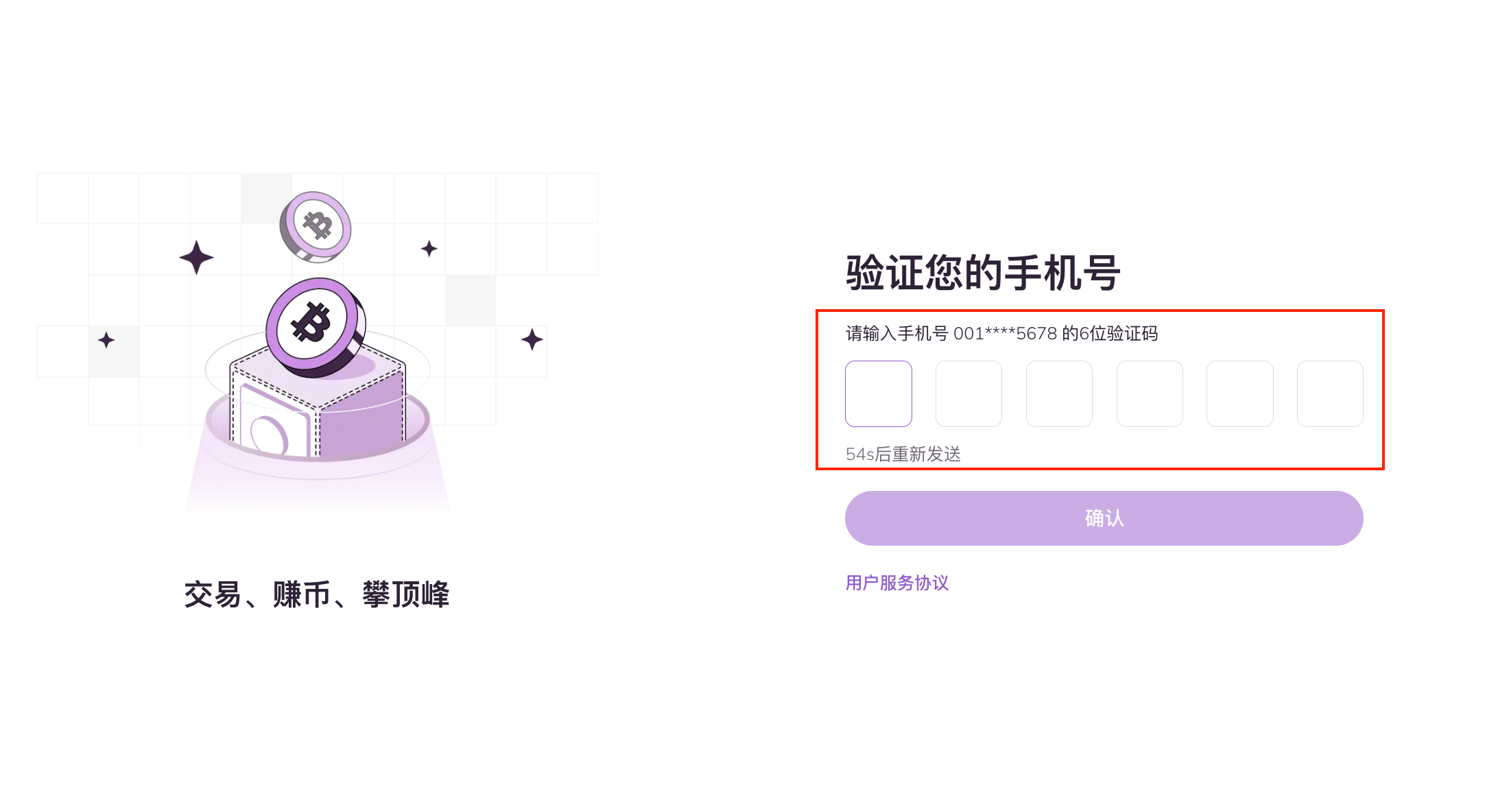 3. 去手机查找AscendEX官方发送的验证码短信,填写验证码后点击【确认】即可注册完成。