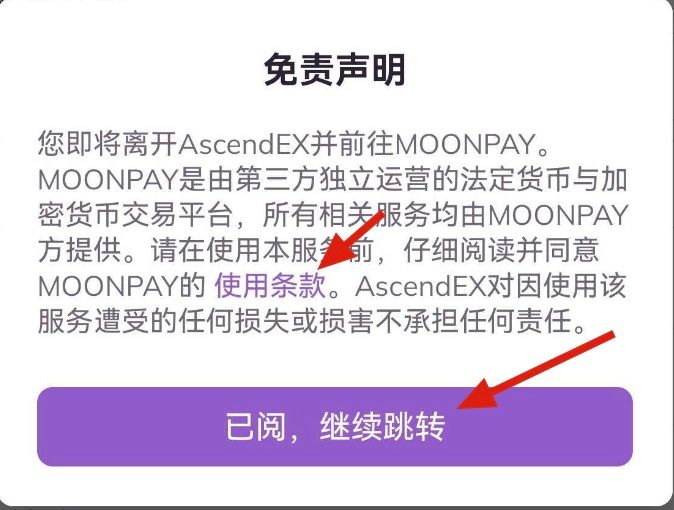 顶峰AscendEX支持全球60多种法币一键快速购买比特币、以太坊等数字货币。您可以参照以下步骤通过MoonPay进行法币交易。