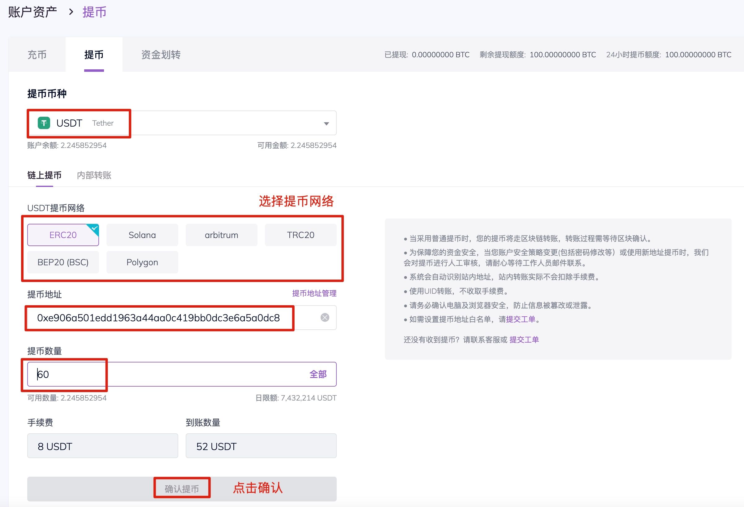 7.点击确认提币即可。