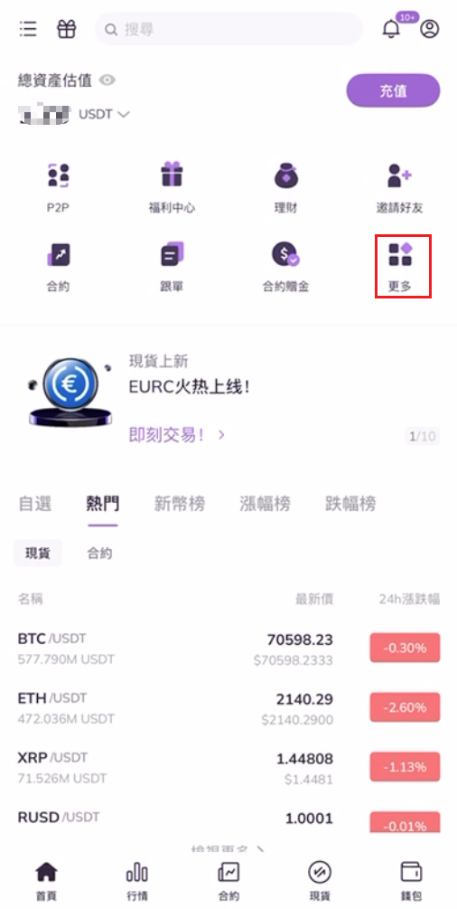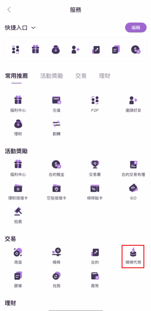 1.登錄AscendEX App,點擊首頁中部槓桿代幣。