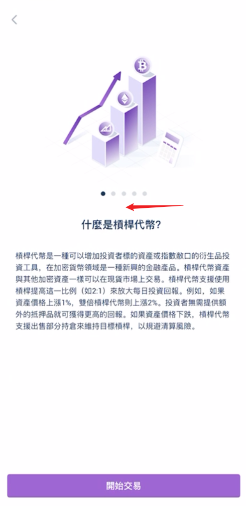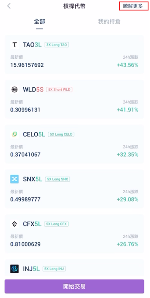 4.在了解槓桿代幣相關知識後,您可於當前任意頁面下方點擊開始交易按鈕。