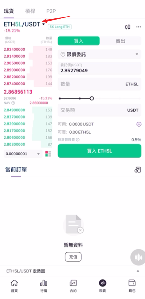 5.進入現貨交易操作頁面,可點擊幣種列表。